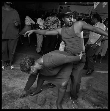 Bill visited Junior's two dozen times from 1993 to 2000. I asked him about the first time, when he showed up alone, no photo assistant, just him and his gear. How was he able to infiltrate this personal and emotional space to capture intimate images amid flailing arms, riveting hips and faces fully absorbed in the deep blues vibe?